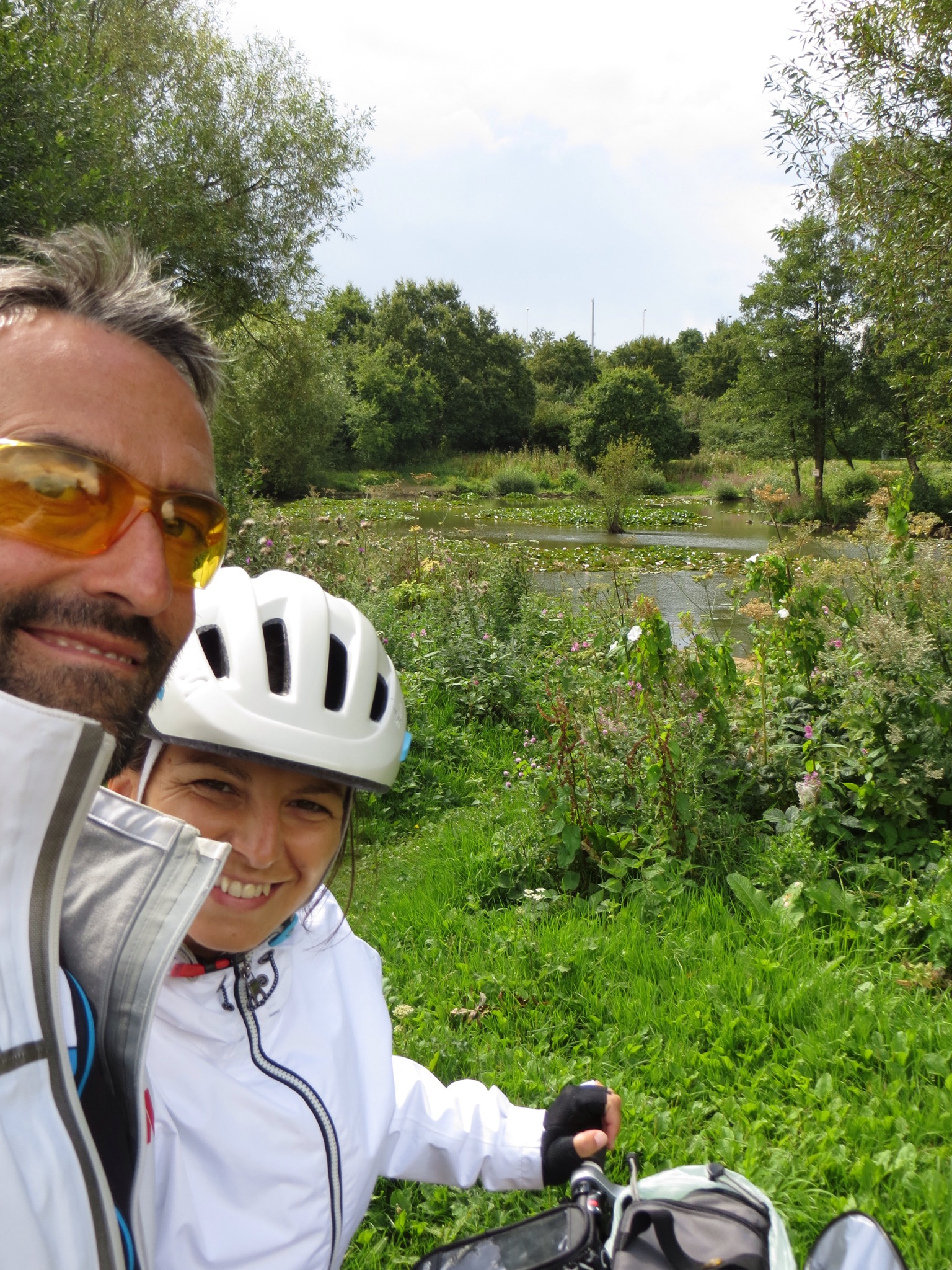 Quasi all’inizio di questa tappa abbiamo incontrato una coppia di giovani torinesi impegnati anch’essi nel nostro stesso tragitto e quindi pedalato con loro per una quarantina di km fino a quando il diluvio ci ha diviso…poco attrezzati x la pioggia loro hanno deciso di attendere condizioni migliori x proseguire…noi impavidi e organizzatissimi proseguiamo😜